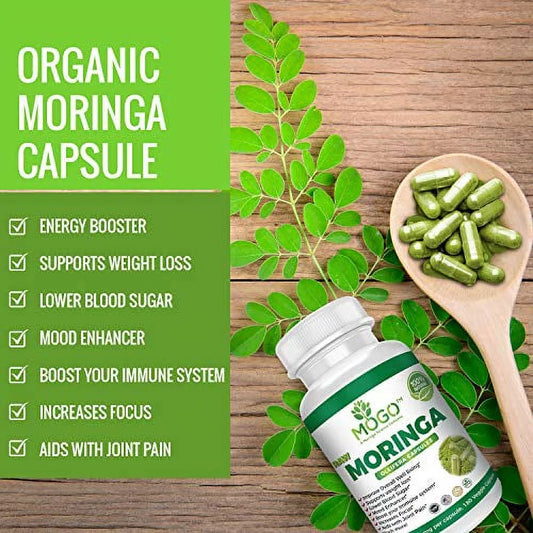 180 Organic Moringa Leaf Powder Capsules -Max 2100Mg per Serving.Immune,Energy Booster,Multivitamin,Boost Metabolism,Natural Weight Loss,Antioxidant Rich Superfood Supplement -MOGO?