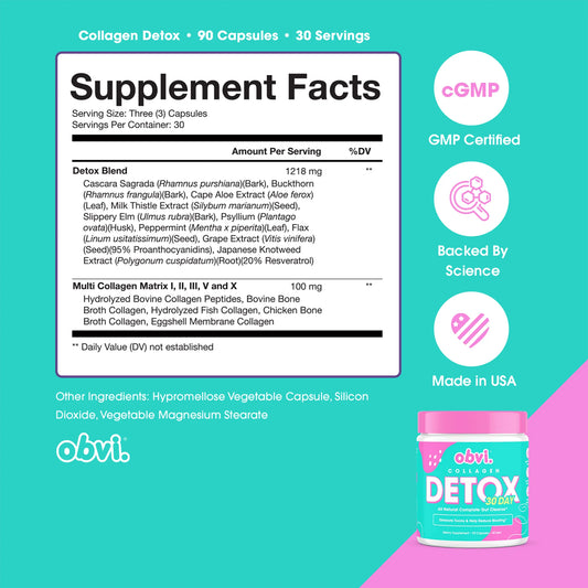 30 Day Collagen Detox, All Natural Complete Gut Cleanse, 90 Capsules (30 Servings)