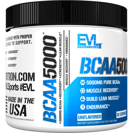 EVL Bcaas Amino Acids Powder - BCAA Powder Post Workout Recovery Drink and Stim Free Pre Workout Energy Drink Powder - 5G Branched Chain Amino Acids Supplement for Men - Unflavored Powder
